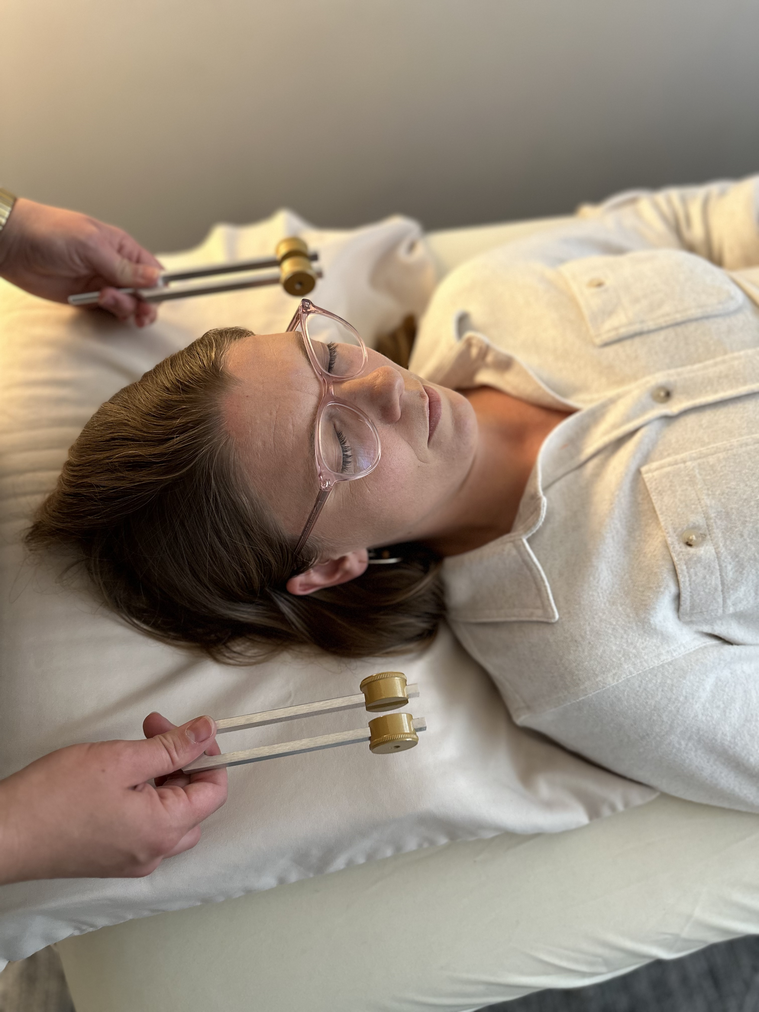 Enhanced Treatment Effectiveness: Combining tuning forks with acupuncture enhances the effectiveness of both modalities. The sound vibrations penetrate deeply into the tissues, complementing the physical stimulation of acupuncture needles and promoting healing.